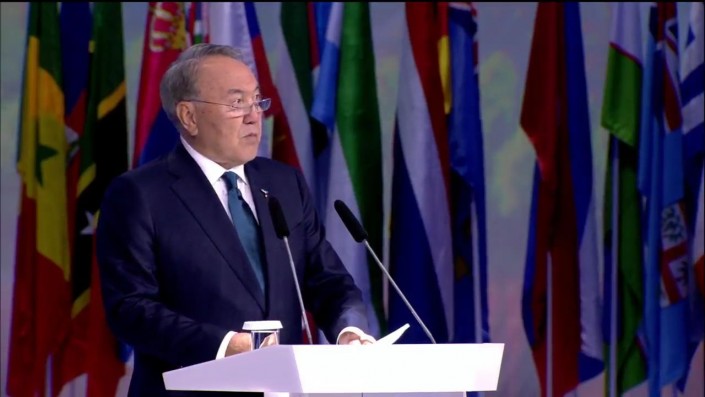 "В ноябре 2012 года в Париже представители более 100 государств - членов Международного бюро выставок оказали нам высокую честь, доверив проведение данной выставки. Я хочу выразить благодарность всем странам за принятие нашей заявки и предложенной темы. Выставки такого масштаба - не только усилие одного государства, это труд международного сообщества, представляющего свои достижения на этой выставке. Международная выставка EXPO в Астане - это новая вершина в продвижении нашей страны, национального бренда "Казахстан" в глобальном пространстве", - отметил Назарбаев.