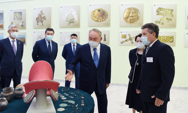 Нурсултан Назарбаев в ходе визита в Туркестан посетил выставку, где были представлены редкие и интересные артефакты, обнаруженные на городище Культобе в полевом сезоне 2020 года.