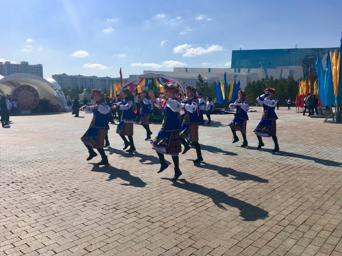 Основные народные гулянья в Нур-Султане развернулись на площади у монумента "Қазақ елі". С праздничными номерами на уличной сцене выступили творческие коллективы разных народов.