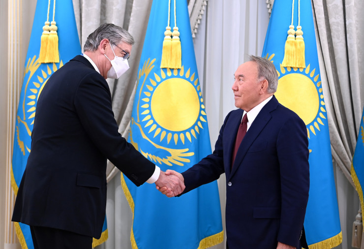Кроме того, Первый Президент Казахстана встретился с председателем британо-казахского общества Рупертом Гудманом.