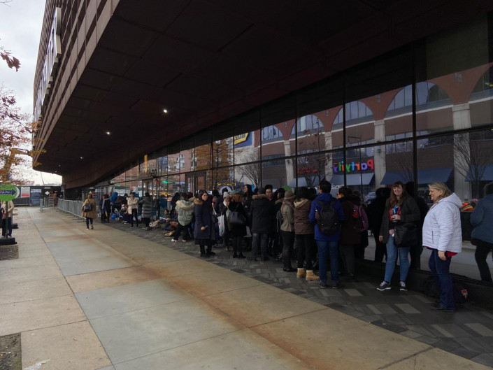 С раннего утра они начали занимать места в очереди, чтобы первыми попасть в фан-зону.