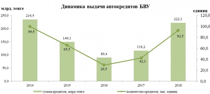 Вместе с тем в 2018 году банки выдали 92,5 тысячи автокредитов на сумму 222,1 миллиарда тенге. По сравнению с предыдущим годом объемы выдачи удвоились.