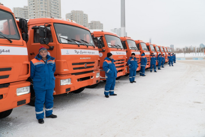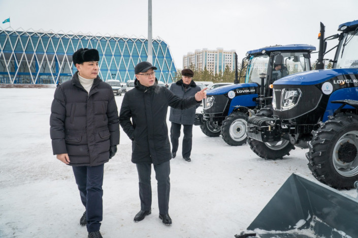 В столице парк коммунальных служб пополнился новой спецтехникой. Для уборки дорог и тротуаров от снега поступило свыше 60 единиц техники, среди которых самосвалы, лаповые погрузчики, автогрейдеры, комбинированные дорожные машины с распределителем сухих противогололедных материалов, тракторы и так далее.