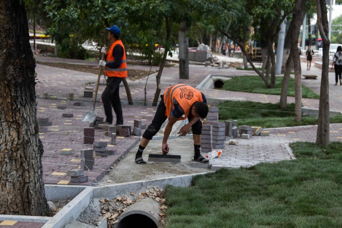 Корреспондент Tengrinews.kz узнал, зачем это делается и когда горожане смогут свободно прогуляться по новым тротуарам.