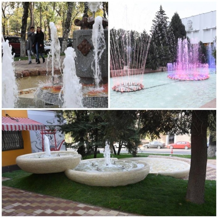 Построен фонтан между Национальной библиотекой и улицей Байсеитовой. Отремонтирован неработавший фонтан перед Государственным академическим русским драматическим театром имени Лермонтова.