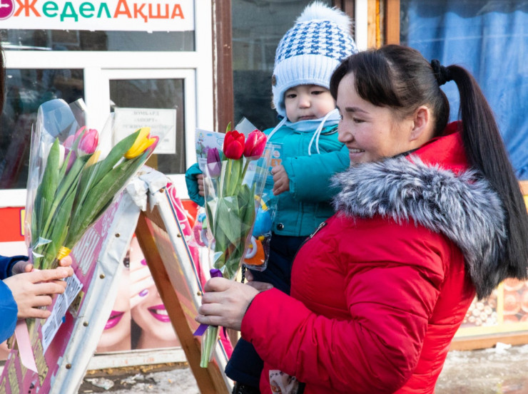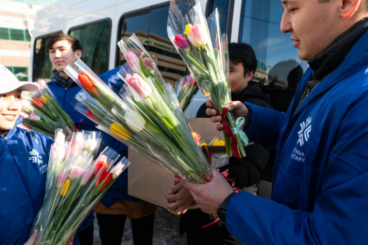 "8 Марта замечательный праздник. Праздник весны. Наша акция посвящается нашим матерям, сестрам, всем женщинам. В первые секунды, когда дарили тюльпаны, женщины сначала удивлялись и смотрели с недоверием, но затем они радовались и благодарили за такое внимание", - говорит столичный волонтер Адилет Байбосынов.