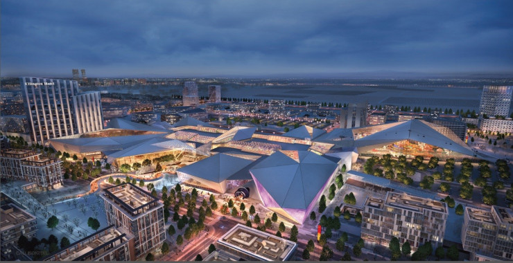 Строительство включает в себя торгово-развлекательный комплекс с аквапарком и кинотеатром. Планируется, что на этой территории появится центр скалолазания, киберарена, мультифункциональный игровой комплекс и новый отель.