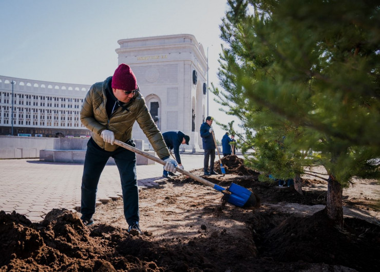 "В столице продолжается экологическая акция "Бірге - таза Қазақстан". Во время общегородских субботников 16 и 23 апреля, которые прошли во всех районах города, проведена уборка на общей площади более 5,4 миллиона квадратных метров. Высажено более четырех тысяч саженцев (сосна, береза, дуб, липа, клен и другие).