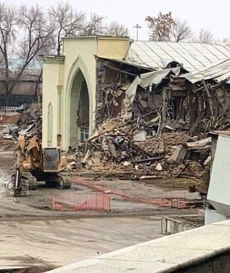 Активисты, проводившие 4 ноября акцию против уничтожения исторического здания, сообщили, что сейчас снесено около половины здания. Как отметила активистка Салтанат Ташимова, горожане воспринимают случившееся как большую потерю.