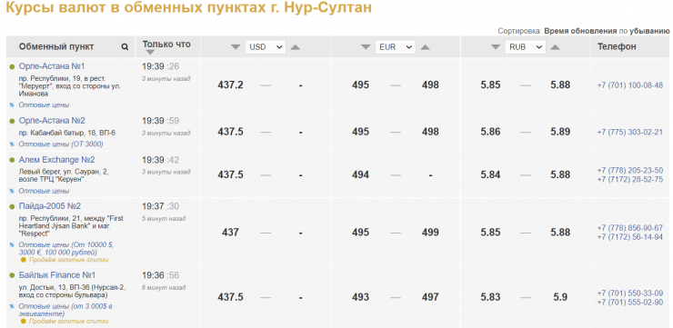 В Алматы, по данным Kurs.kz, обменники не закрывали продажу, там продажа сложилась на уровне 437,5 тенге за доллар. Также валюту можно приобрести в банках второго уровня, но по курсу 440,8 - 441 тенге за доллар. Обменные пункты Нур-Султана в графе "продажа" выставили прочерк.