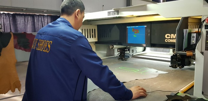 На специальном барабане каждый кусок кожи натягивают, чтобы выявить дефекты. Отбракованные куски в дело не идут. После того как дизайн разработан, его передают на специальные лазерные резцы, которые по лекалам вырезают детали будущих туфель.