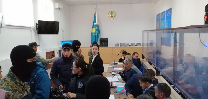 Судебный процесс проходит в спецучреждении ЕЦ 166/10, это колония минимальной безопасности, расположенная в черте Нур-Султана. Очевидно, что заседание решили проводить здесь, чтобы не везти арестованных в здание городского суда. Во время процесса тут усилены меры безопасности.