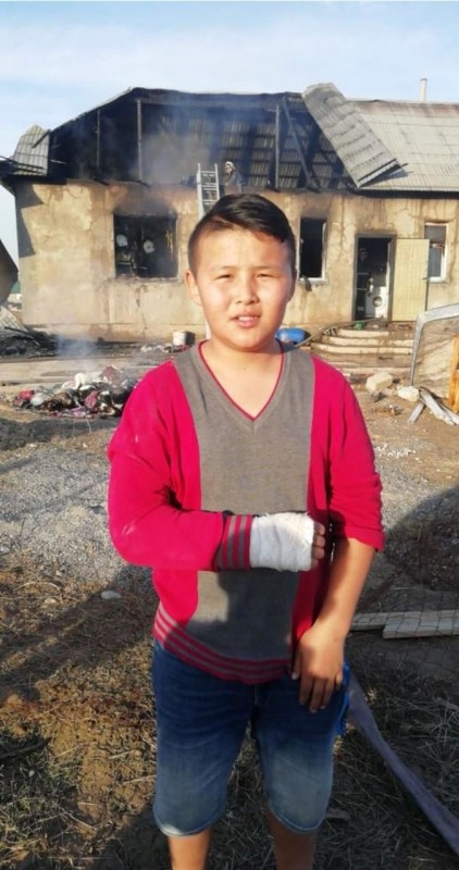 Оқушы бала жаттығу кезінде қолын сындырып алған екен. Ол гипстелген қолына қарамастан балаларды құтқару үшін жанын аямаған.