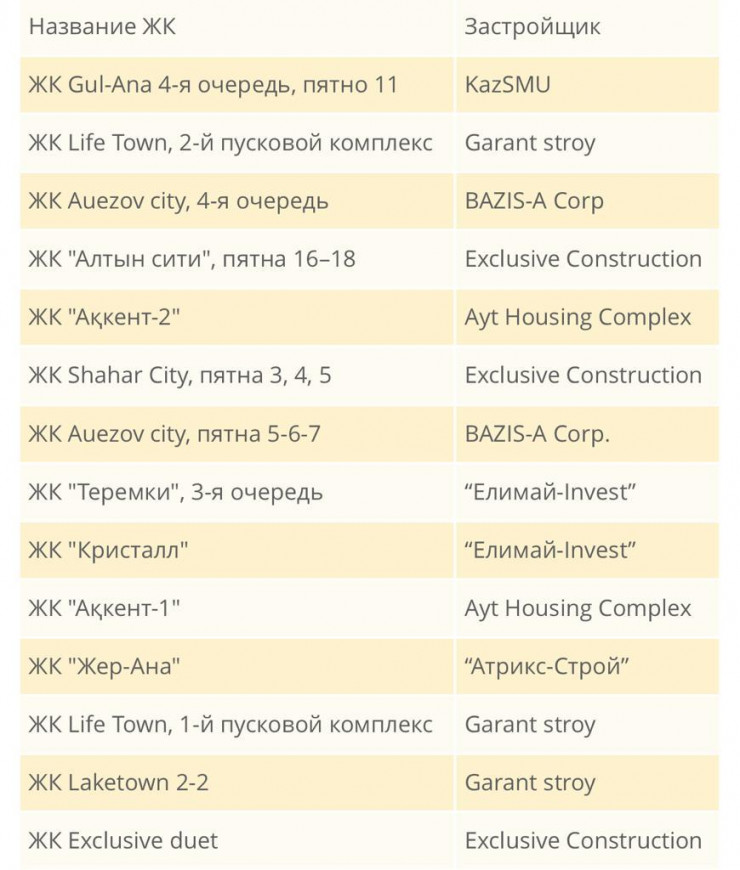 16 марта на портале опубликована полная информация о 92 строящихся ЖК в Алматы.