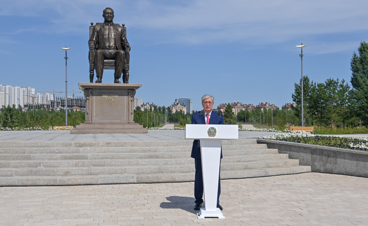 "Поэтому именно здесь сегодня мы открываем исторический памятник, установленный в честь Елбасы Нурсултана Абишевича Назарбаева. Закономерно, что это скульптурное произведение было возведено в юбилейный год", - убежден Глава государства.