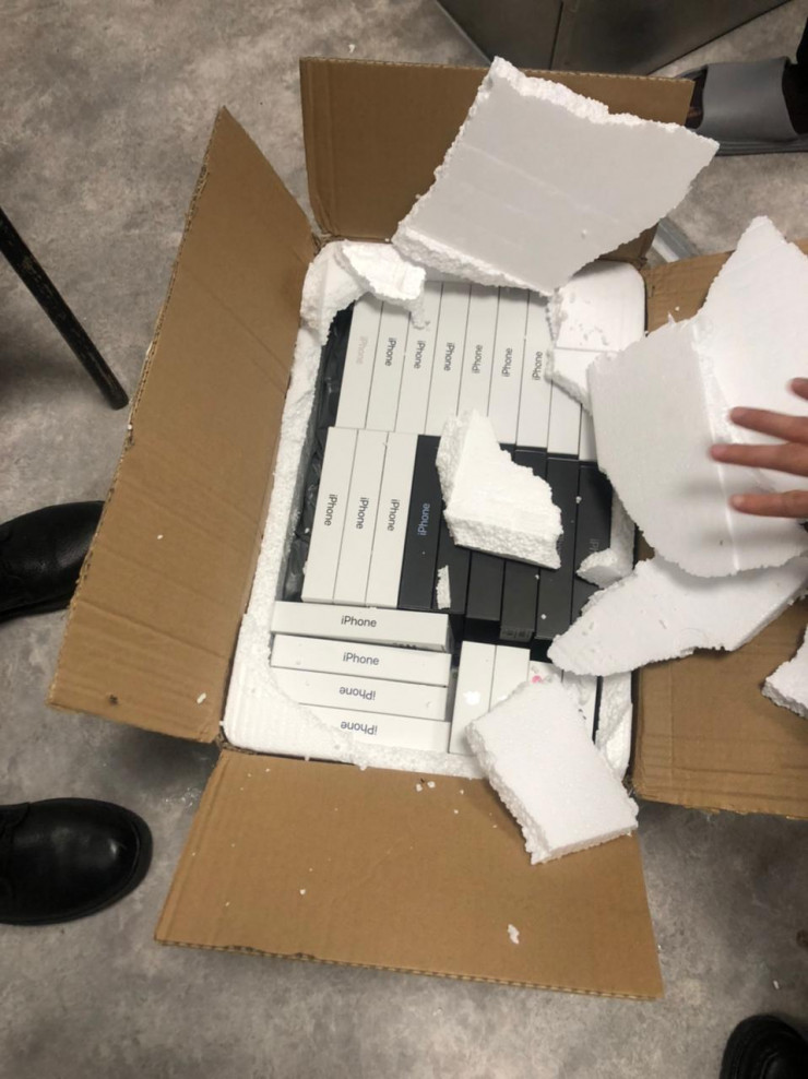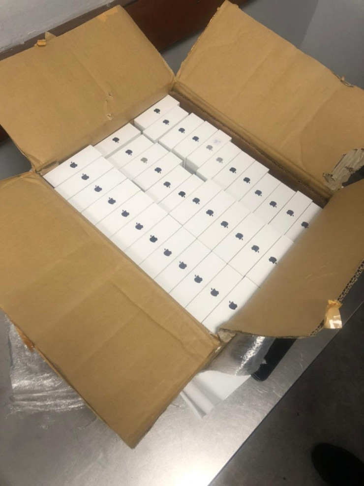 Инцидент произошел 12 октября во время досмотра багажа пассажиров, прибывших рейсом Дубай - Алматы. В ходе таможенного контроля выявлены незадекларированные iPhone 14 и iPhone 13, а также Macbook и AirPods. Общее количество контрабандного товара составляет 70 штук.