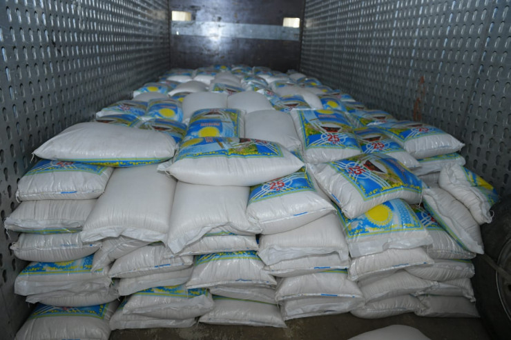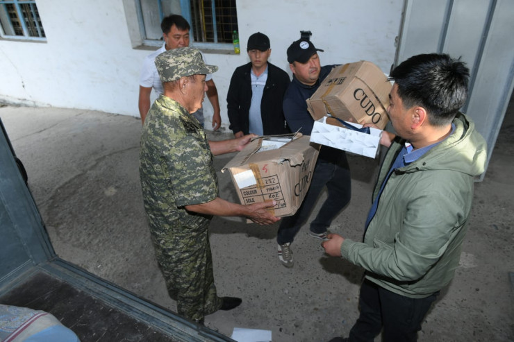 Сообщается, что из Тараза сюда приехал автокараван с более чем 30 тоннами продуктов.