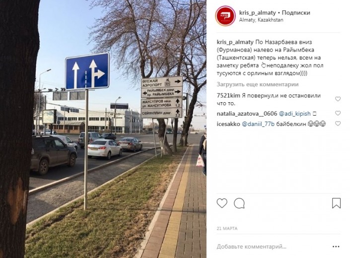 В марте алматинские водители заметили, что теперь запрещено в северном направлении поворачивать с проспекта Назарбаева налево на Богенбай батыра и Райымбек батыра. В Управлении административной полиции отметили, что изменения были необходимы по ряду причин.