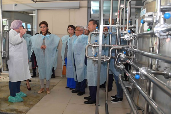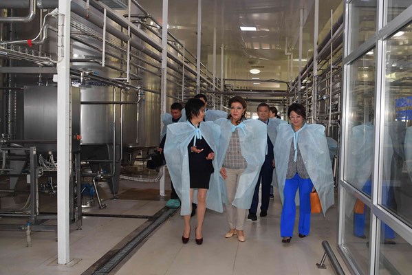 Назарбаева встретилась с коллективом Академии питания, ознакомилась с лабораториями контроля качества и безопасности продуктов питания, технологией производства молочной продукции. На встрече она подчеркнула важность исследовательской работы Академии питания, отметив при этом социальную направленность и значимость создания экологически чистой продукции для населения.