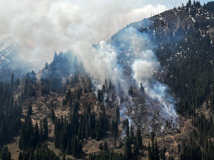 В ДЧС Алматы сообщили, что сухостой и валежник загорелись на территории ГНПП "Иле-Алатауский парк", Мало-алматинское лесничество, квартал 33. На месте вызова работают сотрудники ГНПП "Иле Алатау" - 27 человек и 22 сотрудника ДЧС, а также пять единиц техники.