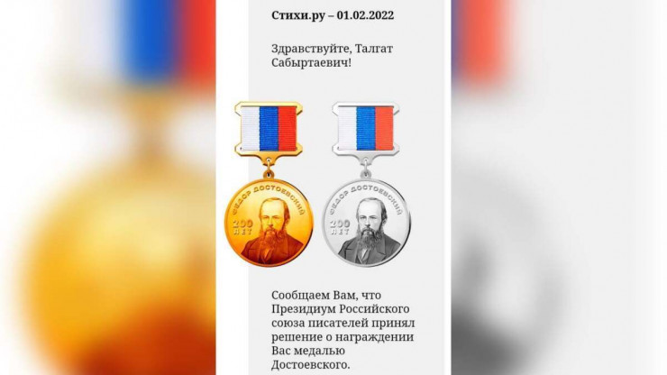 Майор Нургалиев награжден медалью Федора Достоевского. Награда учреждена к 200-летию со дня рождения великого русского писателя и присуждается за значительный вклад в развитие русской литературы.