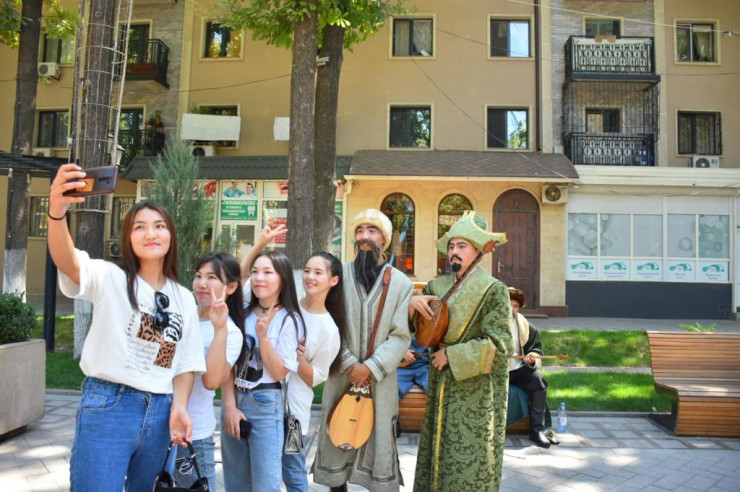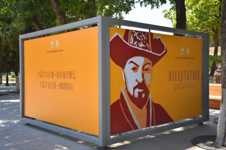 На зданиях Дворца торжеств "Туркестан" и казахского академического драматеческого театра имени Шанина вывесили огромные портреты великих кюйши в стиле поп-арт. Так креативно власти продемонстрировали роль легендарных казахских мастеров игры на домбре - Курмангазы, Дины, Таттимбета, Даулеткерея, Кенена Азирбаева, Биржан-сала, Казангапа, Жаяу мусы. Их изображения также появились на городских билбордах.