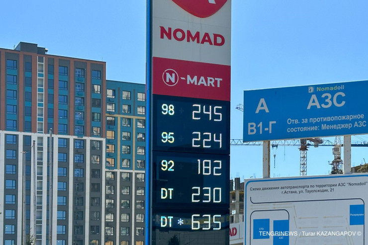 А на АЗС сети Nomad ценники некоторых марок чуть дороже, но тоже старые. Так, бензин АИ-92 продается по 182 тенге за литр, АИ-95 - по 224 тенге, а АИ-98 - по 245 тенге. Причем дизтопливо тут продают по 230 тенге, а зимнее - по 635 тенге за литр.