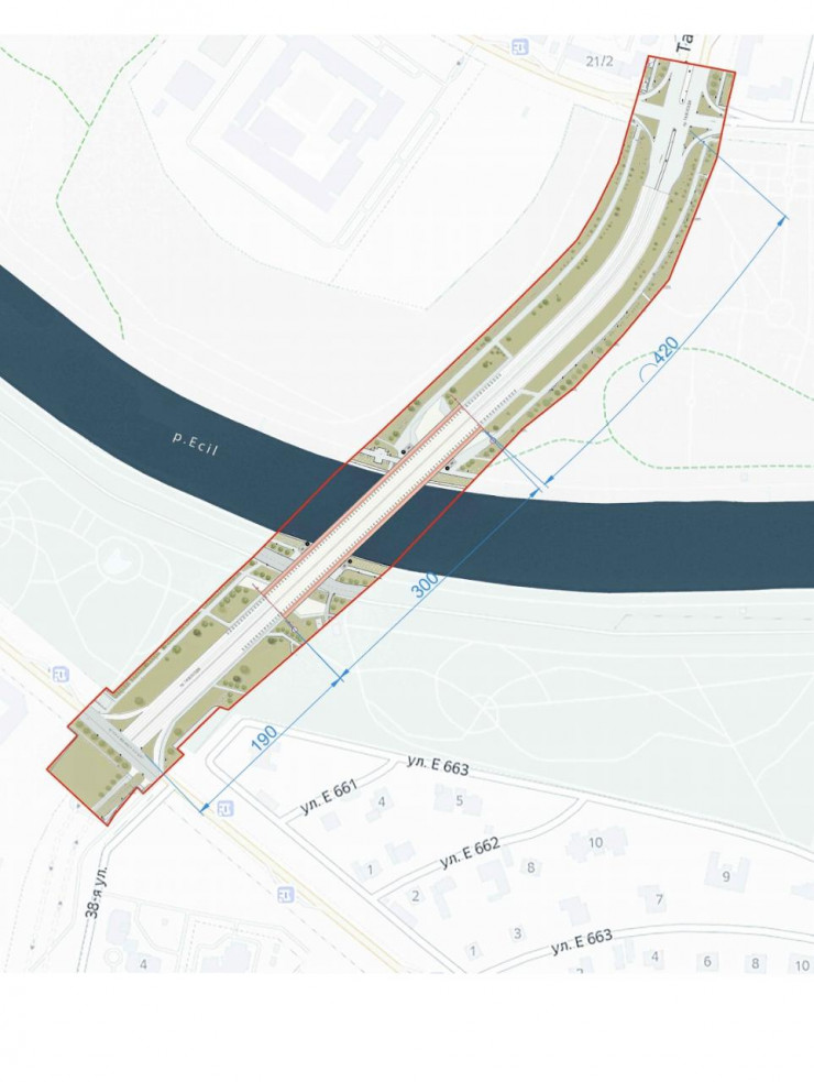 Его строительство запланировано в рамках мастер-плана "Нур-Султан - комфортный город". Также планируется создать новое подмостовое общественное пространство с детскими площадками и зонами для популяризации массового спорта.