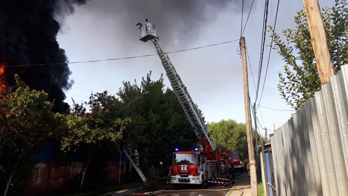 В тушении пожара задействованы 67 сотрудников и 27 единиц техники службы пожаротушения Алматы.