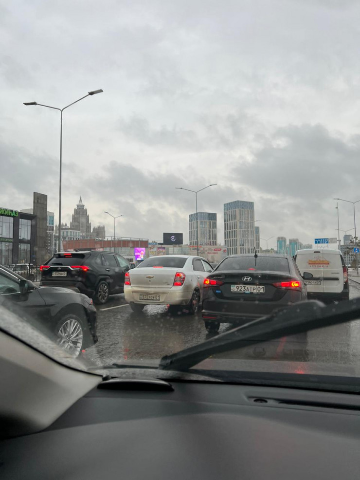 Картографическая компания 2GIS также отмечает 9-балльные пробки на дорогах столицы. А в Алматы фиксируются все 10 баллов.