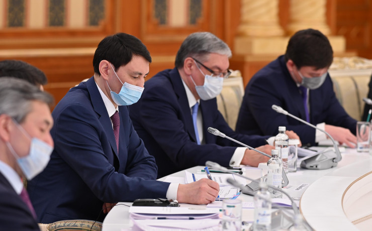 Мероприятие началось с обсуждения необходимого пакета мер для нивелирования негативного влияния геополитической ситуации на Казахстан. По этому вопросу с докладами выступили премьер-министр Алихан Смаилов, председатель Национального банка Галымжан Пирматов, внештатный советник Президента по вопросам экономического развития, заместитель председателя Высшего совета по реформам сэр Сума Чакрабарти, а также члены правительства.