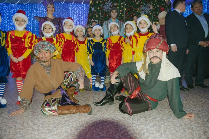 Артист Государственного академического казахского музыкально-драматического театра имени Калибека Куанышбаева Мейрам Кайсанов уже 17 лет в канун Нового года вживается в образ сказочного персонажа и приходит на президентскую елку с мешком подарков.