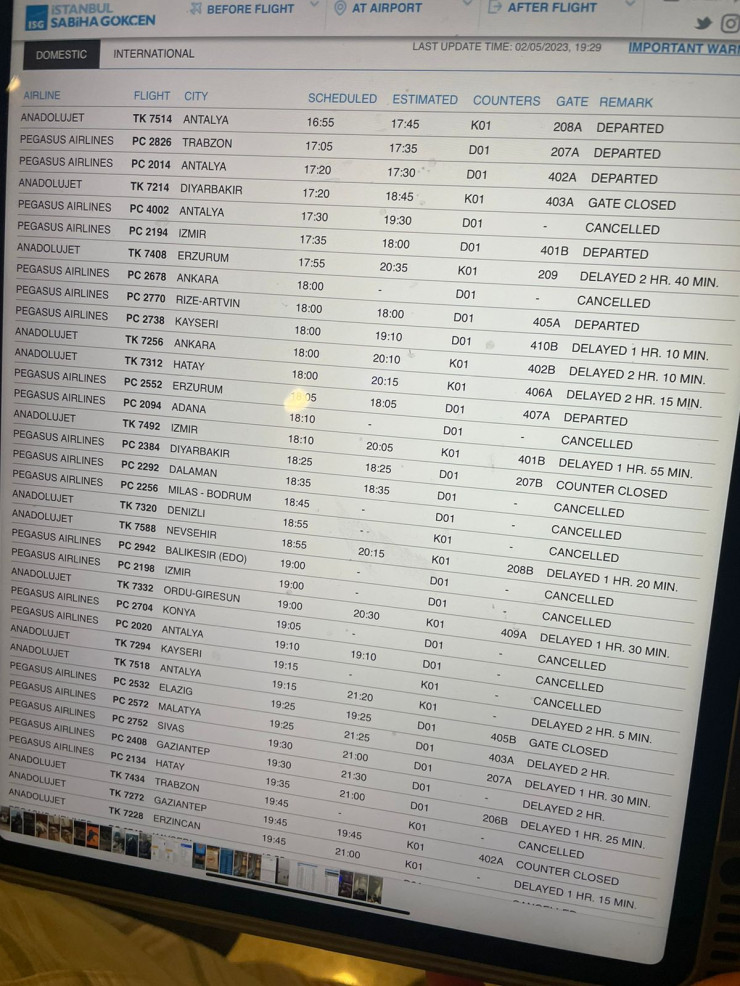 "В воскресенье, 5 февраля, рейсы Стамбул - Астана переносили несколько раз. В этот же день в 21.00 объявили, что все рейсы отменяются по всем направлениям. Наши граждане не могут получить достоверную информацию. Наблюдаются паника и ажиотаж. Аэропорт полный, все этажи заняты людьми, многие не могут получить информацию, что делать, как им быть. Никто не спал, нет условий", - рассказал пассажир.