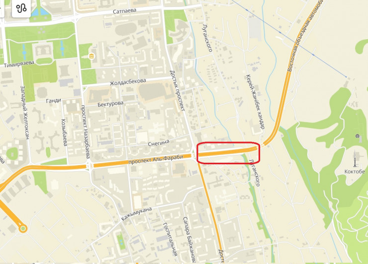 Участок перекрытия проспекта аль-Фараби (выделено красным)
