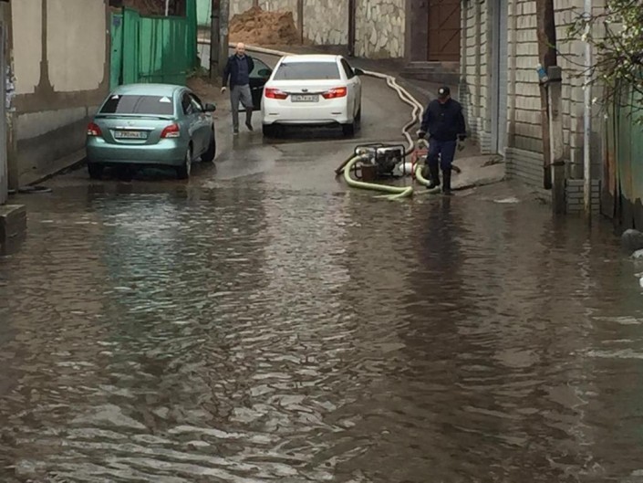 По словам горожан, дождь не был сильным, но шел со вчерашнего вечера без остановки, из-за чего скопилось много воды. Очевидцы сообщают о переполненных арыках и длинных пробках на дорогах.