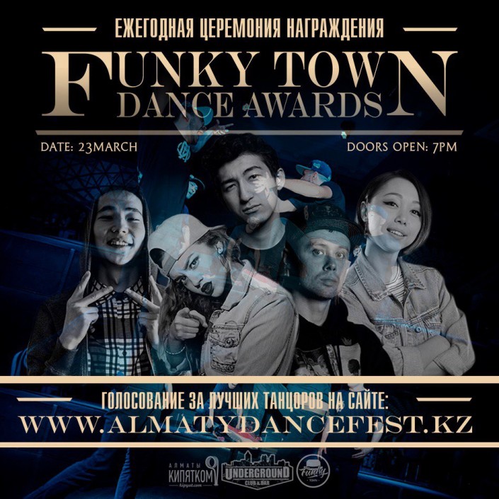 Almaty Dance Festival - это четырехдневный танцевальный фестиваль, который включает в себя ежегодную церемонию награждения Funky Town Dance Awards, танцевальный чемпионат Spring Funky Summit, Vogue Ball и танцевальные мастер-классы от приглашенных зарубежных танцоров.