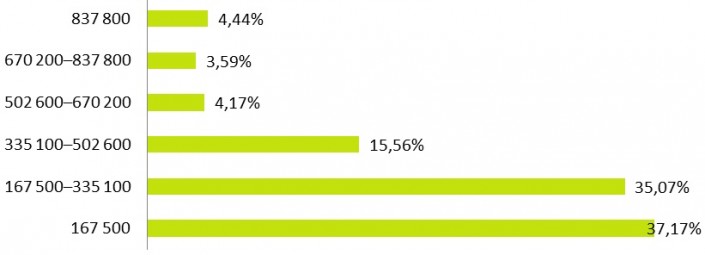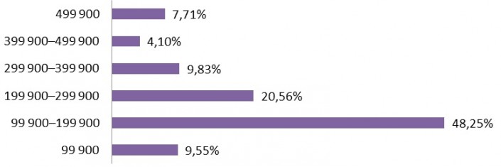 Жұмыс табу деңгейі орташа деп есептелетін салалар (1 орынға 4-6 адамнан келеді): Маркетинг, жарнама, PR, автокөлік бизнесі, ғылым, білім беру, сақтандыру, банктер, инвестиция, лизинг, сауда, жұмыс персоналы, туризм, қонақүй, мейрамхана, үй персоналы, медицина, фармацевтика, спорт клубтары, фитнес, салондар, сатып алу, құрылыс және жылжымайтын мүлік.
