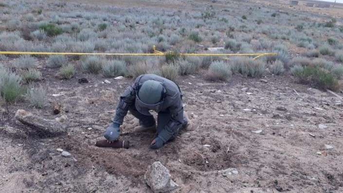 "Близость к полигону Эмба, который в советское время использовался для исследовательских работ и испытаний новейших образцов военной техники и вооружения, проведения боевых стрельб, до сих пор преподносит сюрпризы. По состоянию найденного снаряда могу предположить, что он относится к советскому периоду", - отметил командир группы разминирования войсковой части № 30238 майор Аслан Баймагамбетов.