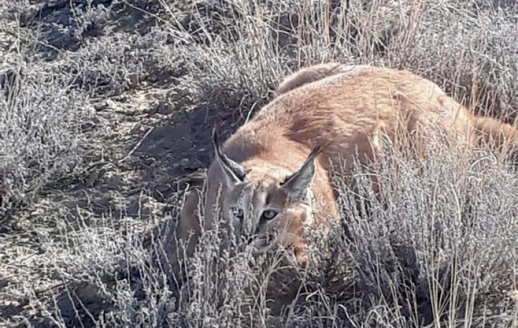 "Это хищное млекопитающее семейства кошачьих. Долгое время каракала относили к рысям, на которых он похож внешне, однако из-за ряда генетических особенностей его выделили в отдельный род. Водится в опустыненных степях. Деятелен каракал главным образом ночью, но зимой и весной появляется и днем. На территории СНГ малочислен, внесен в Красную книгу", - отметили специалисты.