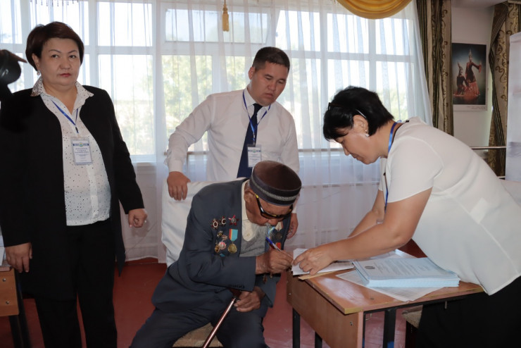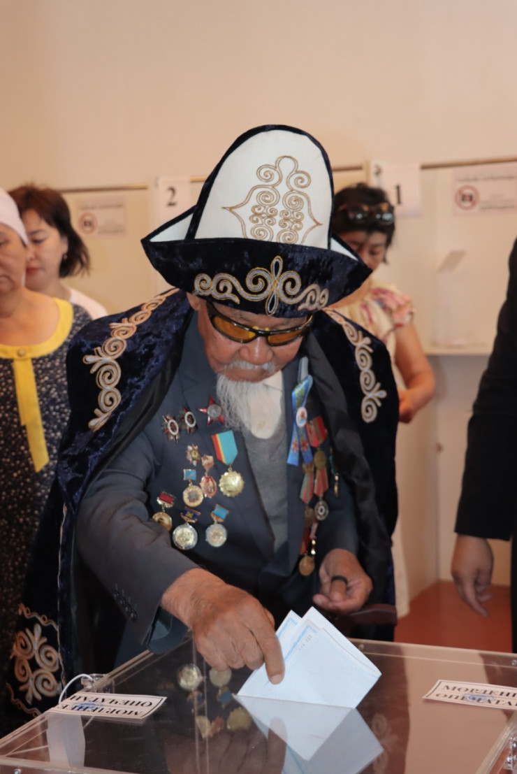 "Фронтовик Яхия Тасыров, проживающий в Сырдарьинском районе Кызылординской области, прибыл на участок № 155 в центре поселка еще до открытия, чтобы проголосовать в знаменательный для страны день", - отметили в облизбиркоме.