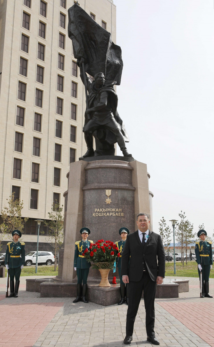 Как сообщается на сайте Акорды, руководство Администрации Президента возложило венок к памятнику великому сыну казахского народа "Халық Қаһарманы" Рахымжану Кошкарбаеву, который первым водрузил знамя над Рейхстагом, и почтило минутой молчания память воинов-казахстанцев.
