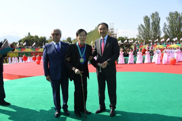Народный писатель Абдижамил Нурпеисов поблагодарил акима города за присвоенное звание почтенного гражданина Алматы, поздравил горожан и заметил, что получать знак почетного горожанина из рук Бакытжана Сагинтаева для него двойная радость.