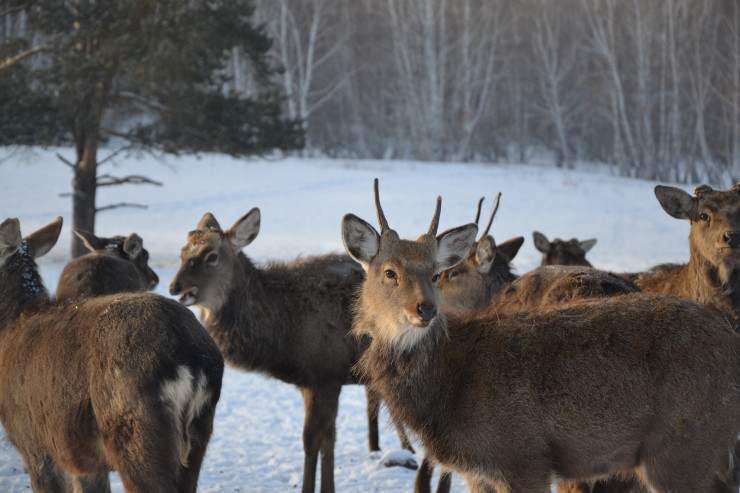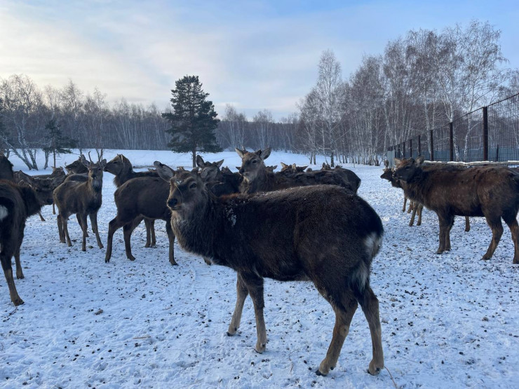 На ферме живут порядка 200 особей. Маралы используются только в лечебных целях, на мясную продукцию их не пускают. Поэтому на ферме содержатся и старые животные. Самки, которые уже не приносят приплод, все равно живут в общем стаде, едят и греются наравне со всеми.