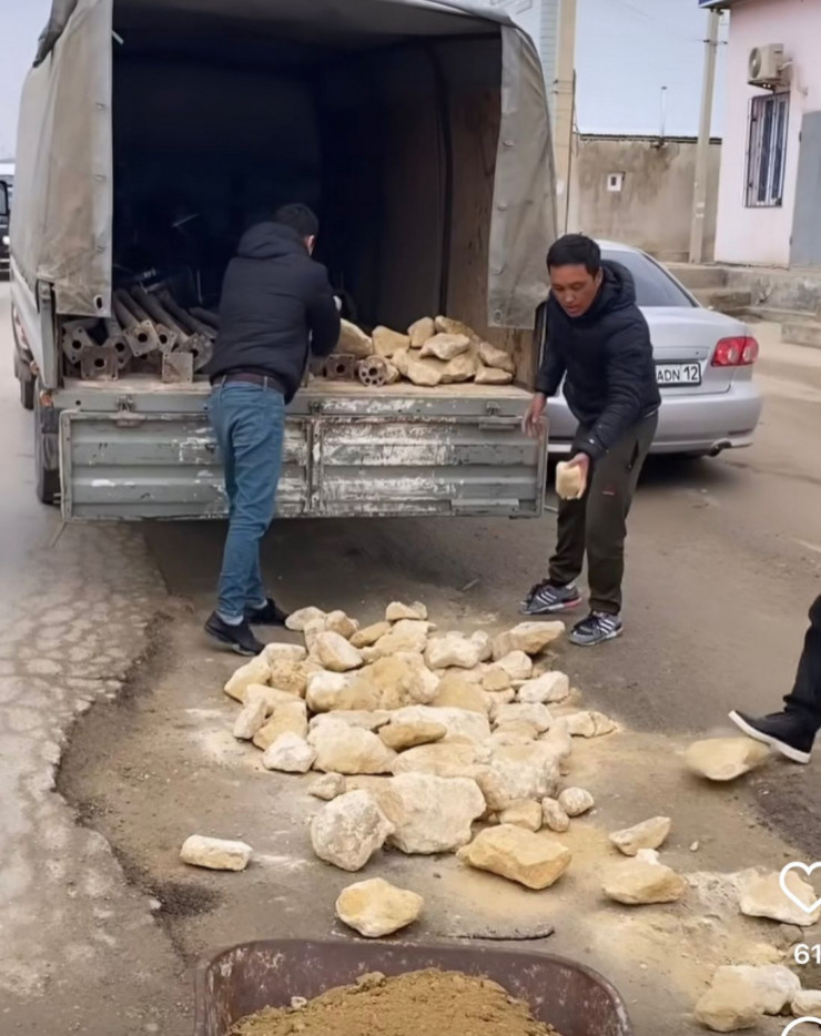 Жители села Атамекен в Мангистауской области самостоятельно ремонтируют дыры на дороге, передает Tengrinews.kz со ссылкой на Massaget.kz