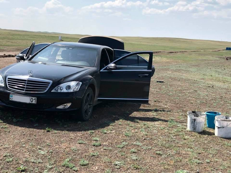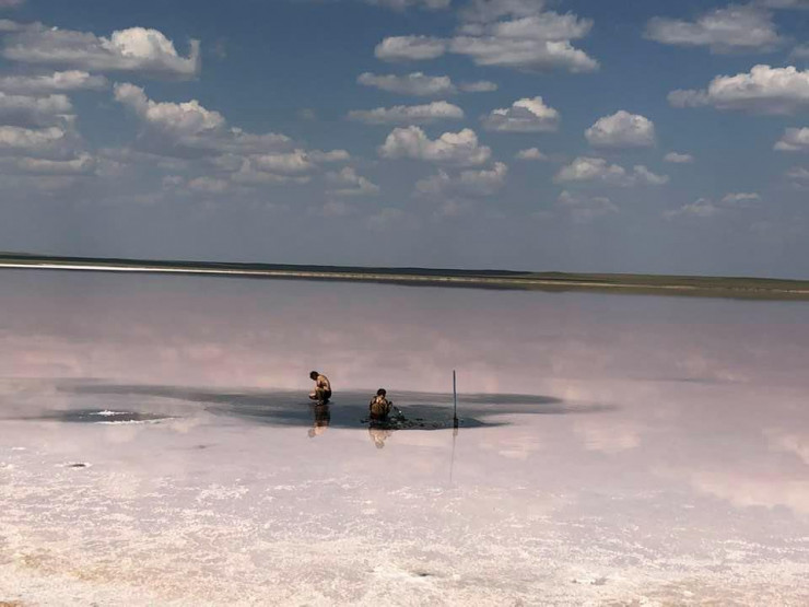 Пользователь Facebook Кульпаш Конырова сообщила, что семейная пара объехала полицейские посты у озера Кобейтуз и лопатами выкапывала грязь из водоема.