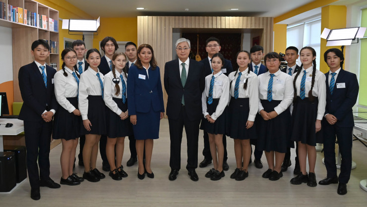Директор школы Салтанат Шабажанова проинформировала Касым-Жомарта Токаева о многолетней истории учебного заведения и показала обновленные кабинеты гимназии.