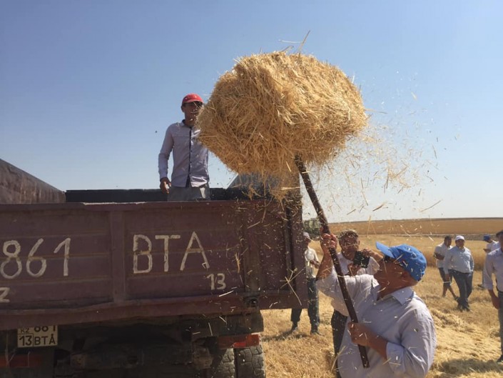 "В крестьянском хозяйстве на 5 гектарах собрали пшеницу урожайностью 25 центнеров с гектара. До конца июля уборка зерновых в Туркестанской области завершится", - написал советник акима Сакен Калкаманов.
