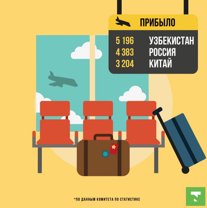 Прибыло в страну за 2017 год 16 081 человек: 11 596 человек из стран СНГ и четыре тысячи человек из других стран. Лидерами по прибывшим в Казахстан стали: Узбекистан - 5 196 человек, Россия - 4 383 человека, а также Китай - 3 204 человека.