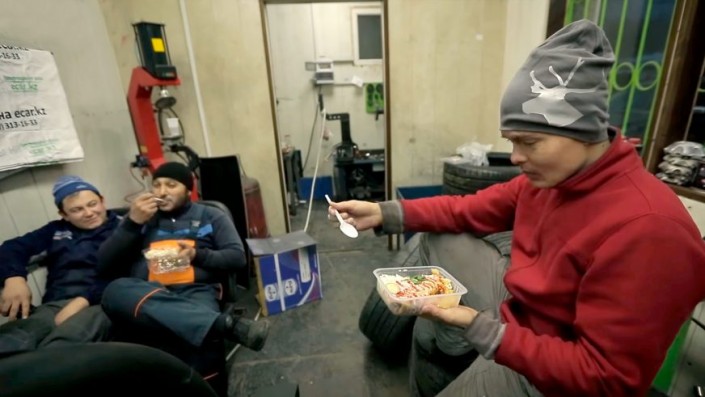 "К концу дня мне стало страшно. Если бы за мной не следил Асанали, я уехал бы отсюда на скорой и проснулся в больнице с перемотанной рукой и большими финансовыми проблемами. Здесь можно заработать подмастерьем 100-150 штук. Когда станешь профи, то даже больше трехсот тысяч в месяц в сезон. Асанали - мастер, который может провести весь цикл шиномонтажа за 15(!) минут. Мне он сказал честно: "Я вижу, ты стараешься, у тебя для первого раза нормально получается. За десять дней научишься, через месяц будешь летать". Это тяжкий изнурительный труд. Но ты через неделю в такой физической форме, что никакая качалка тебе не нужна", - делает выводы Масленников.