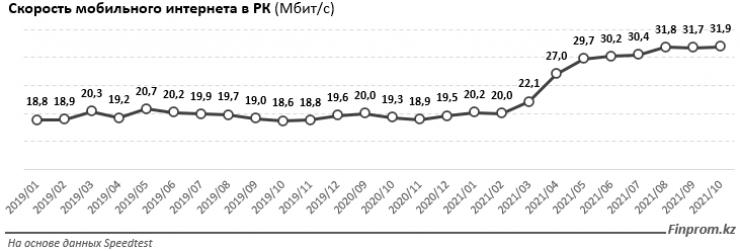 Аналитики отмечают, что в Казахстане за последний год наблюдается положительная динамика роста скорости интернета. Если до 2021 года скорость интернета в стране значительно не менялась, то к октябрю этого года скорость мобильного интернета составила 31,93 мегабит в секунду - сразу на 63,6 процента больше по сравнению с началом года. Казахстан опередил по этому показателю всю Центральную Азию и страны ЕАЭС, за исключением Армении.